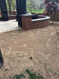 A collection of outdoor projects showcasing our landscaping services, including freshly leveled yard, outdoor patio, dirt road, and gravel-covered construction site.